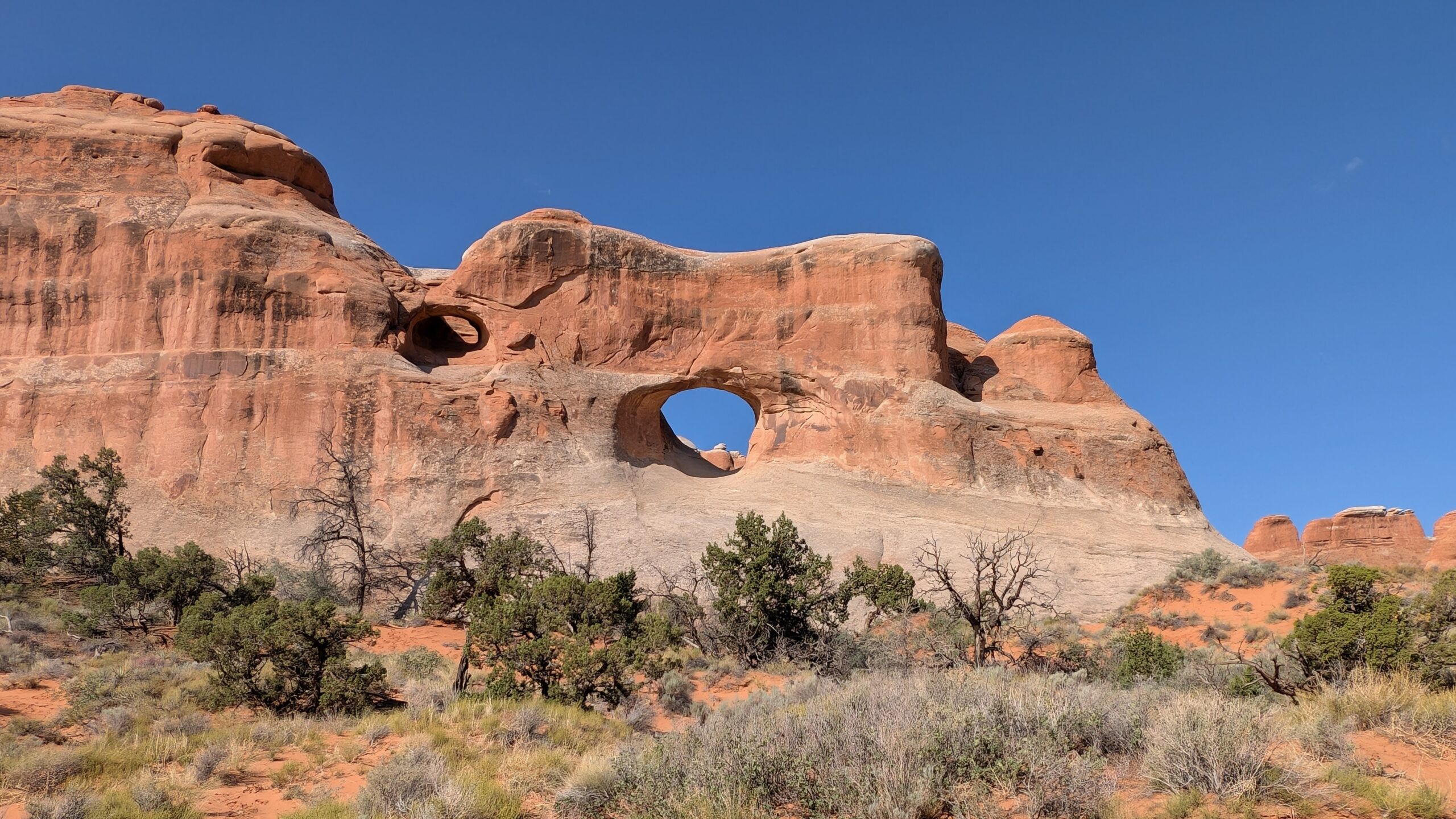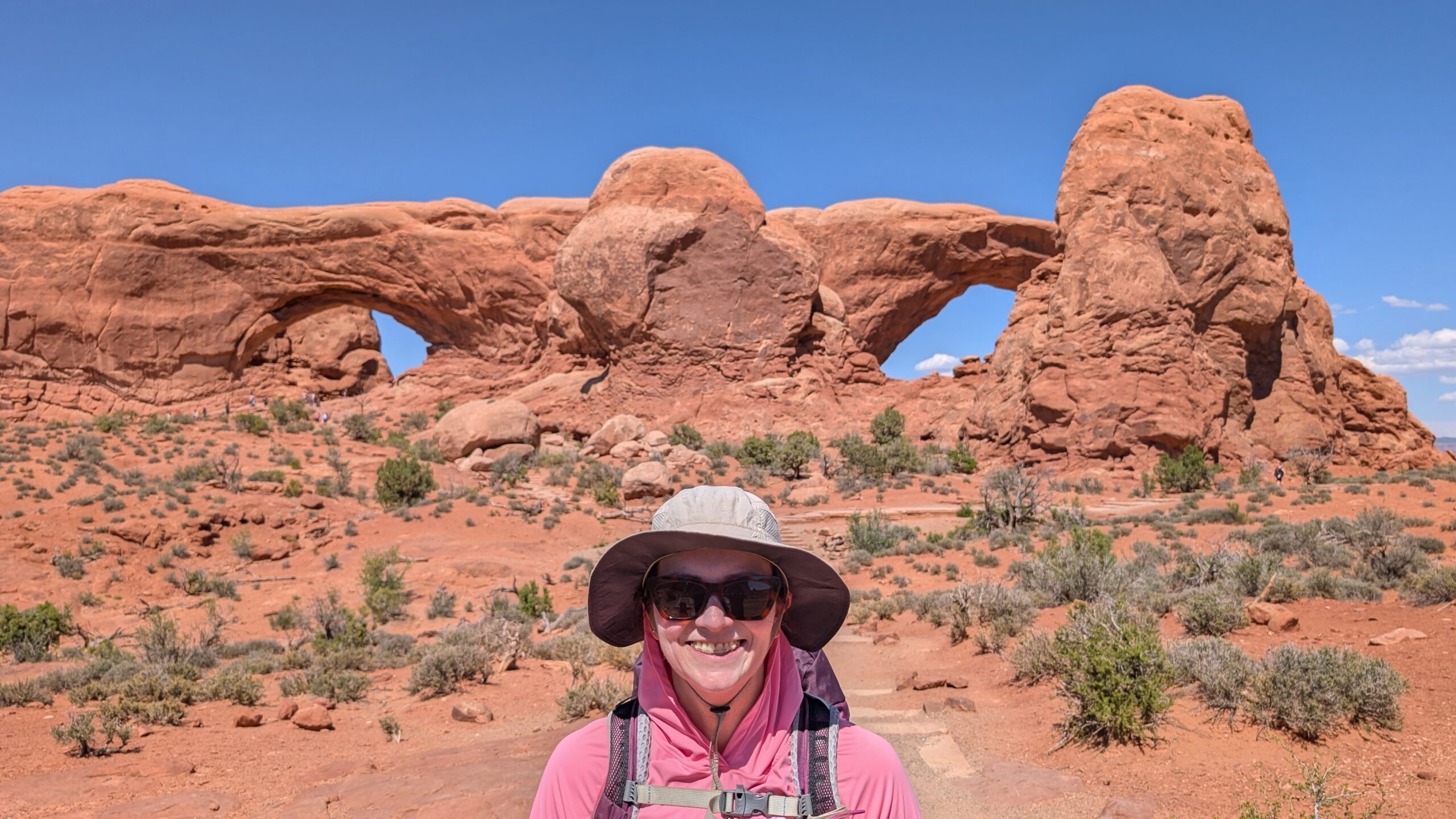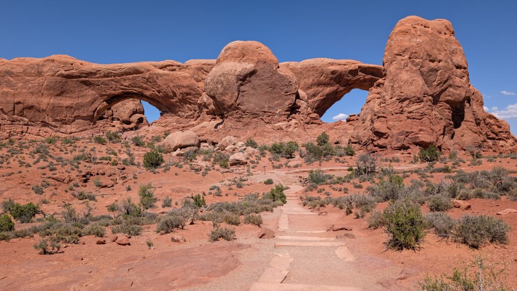We turned around where the 4×4 road connects and headed to the Windows area. The first arch we saw was Double Arch for obvious reasons. I think this one is my favorite, because of just how big and unique it is. There’s just a lot about it that seemed interesting to me.