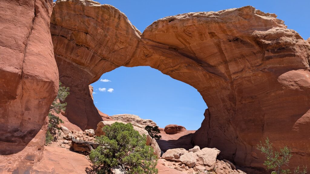 The next arch we visited was Skyline Arch, and I carried Emmett the whole way. He loves to be carried. This is also the first time we’ve had someone ask to get out of the way so they could take a picture with nobody in it. My experience has been that you just have to deal with it in places like this, especially given how crowded some of them are.