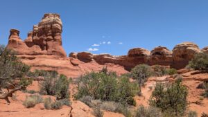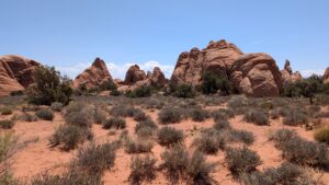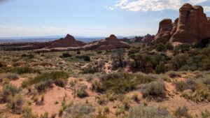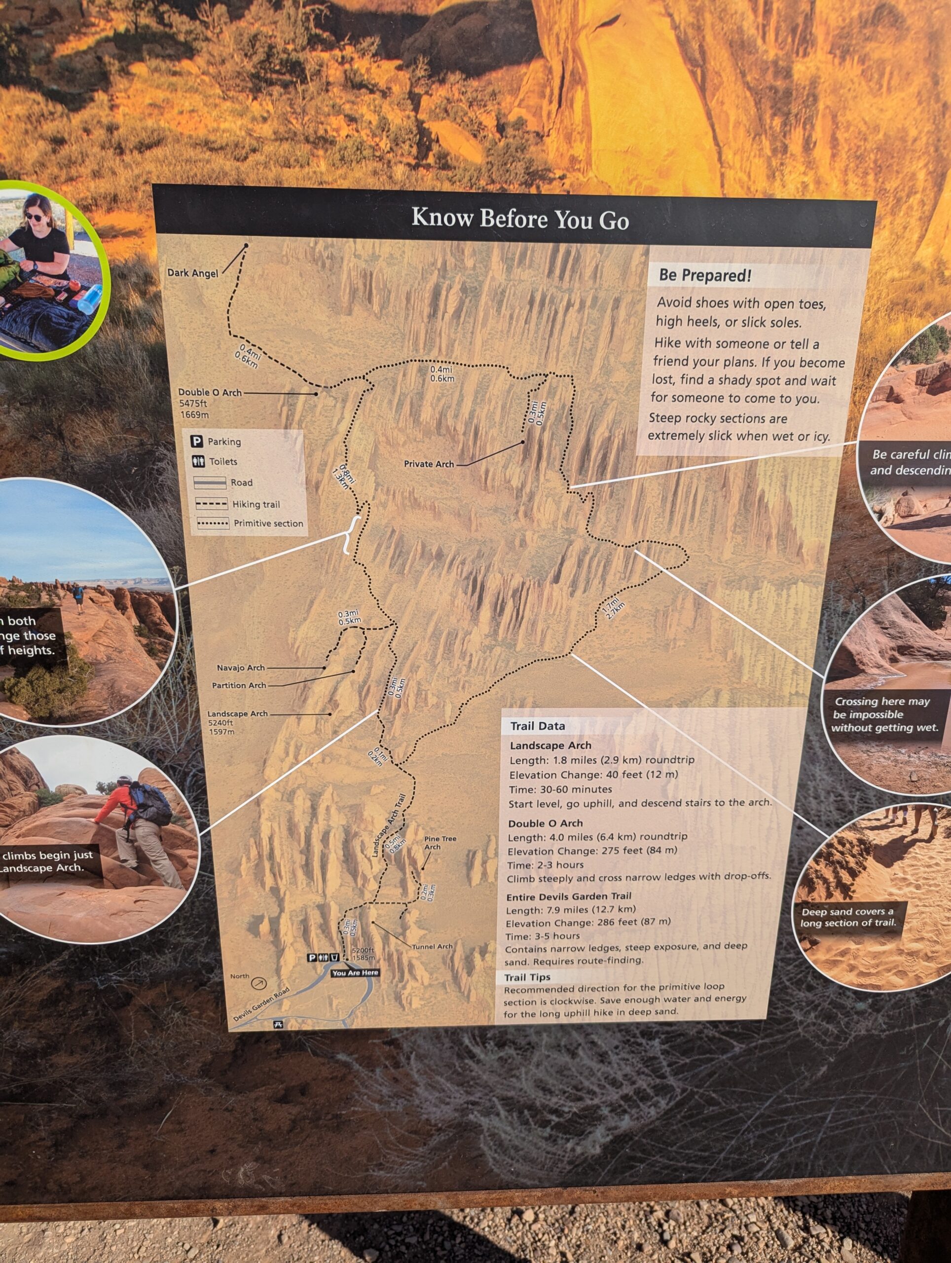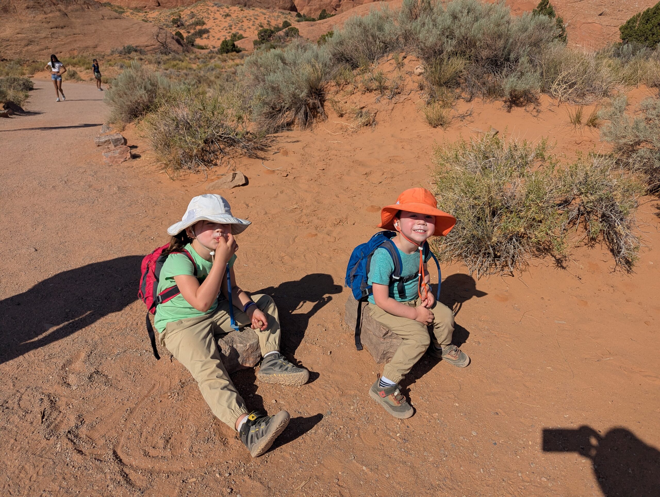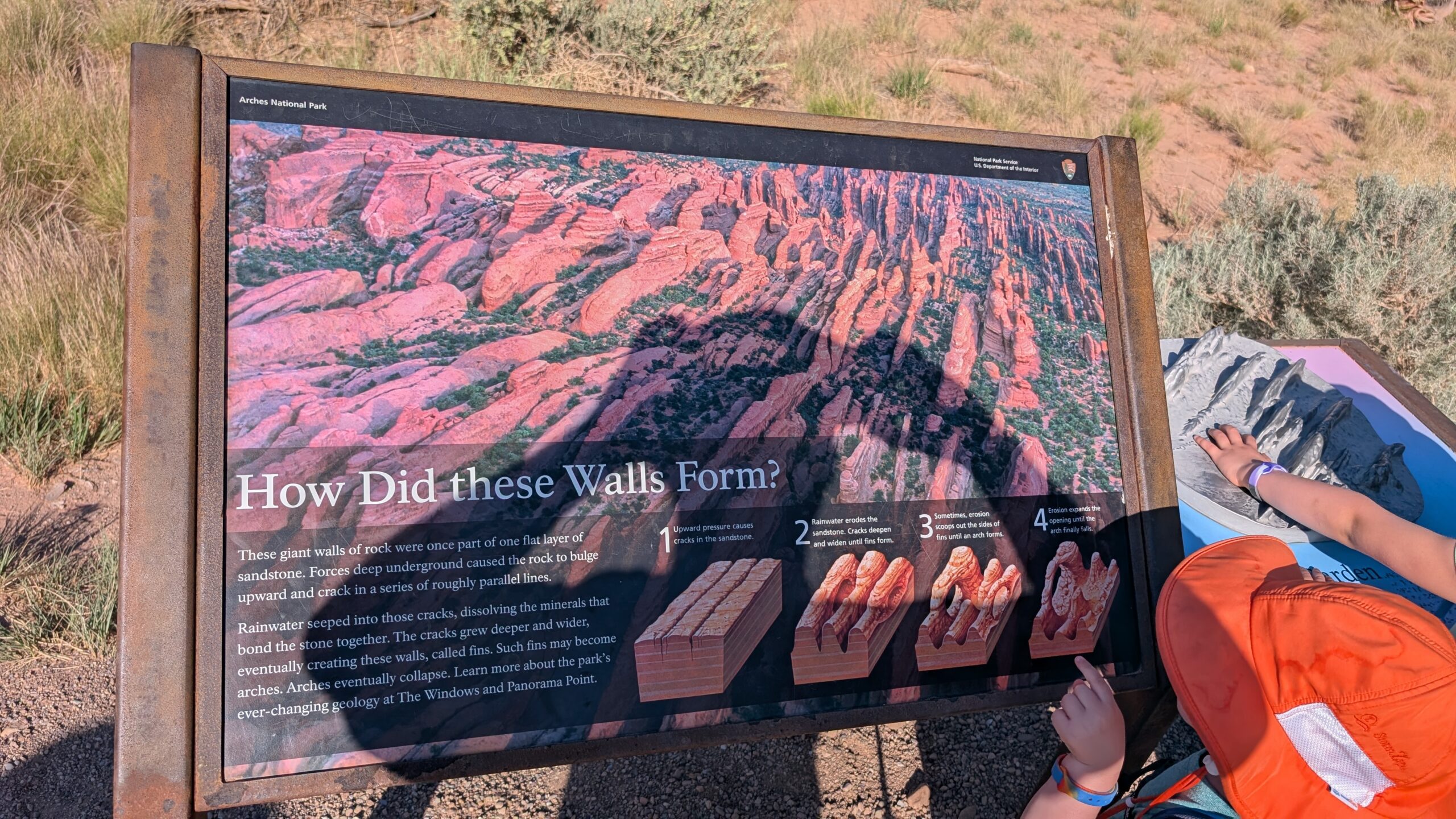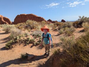 I really liked the Devil’s Garden trails (Landscape Arch, Pine Tree Arch, Tunnel Arch, Navajo Arch, and Partition Arch), except that there was significant whining, child-management, and mommy-mommy-mommy-mommy most of the way. And a highlight – the NPS worker cleaned out the pit toilets at the trailhead while we waited for Phil.