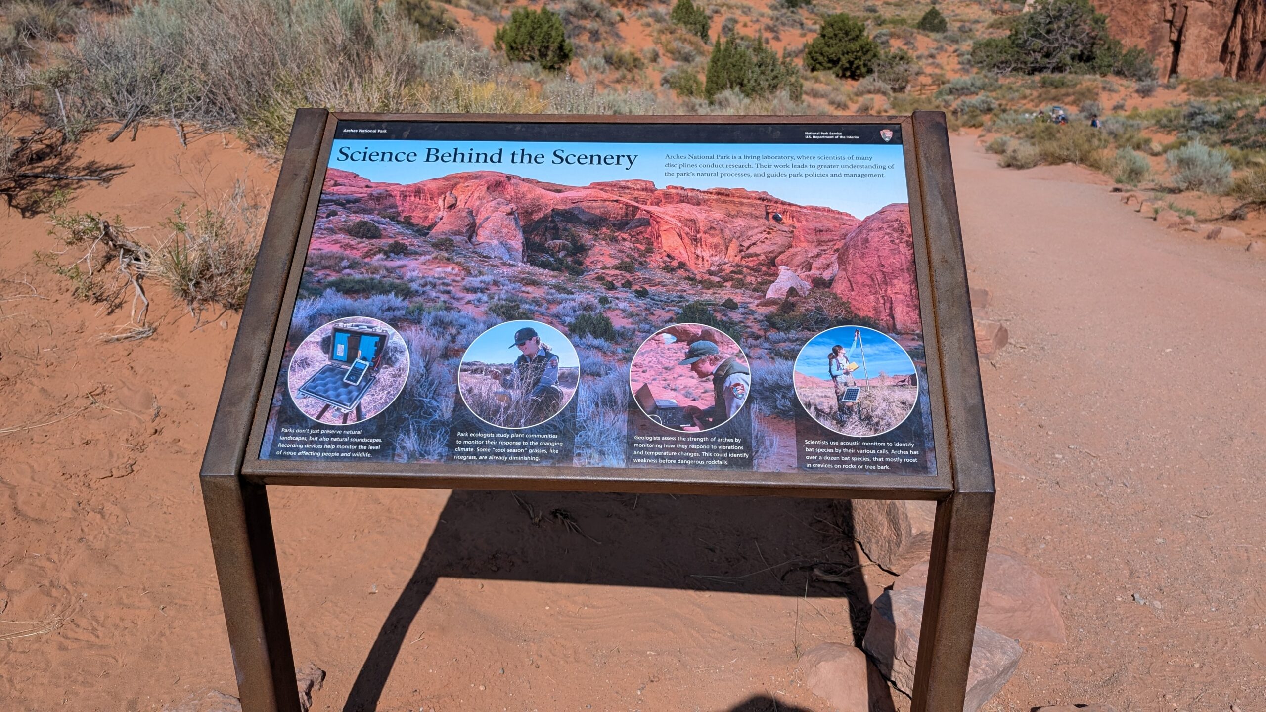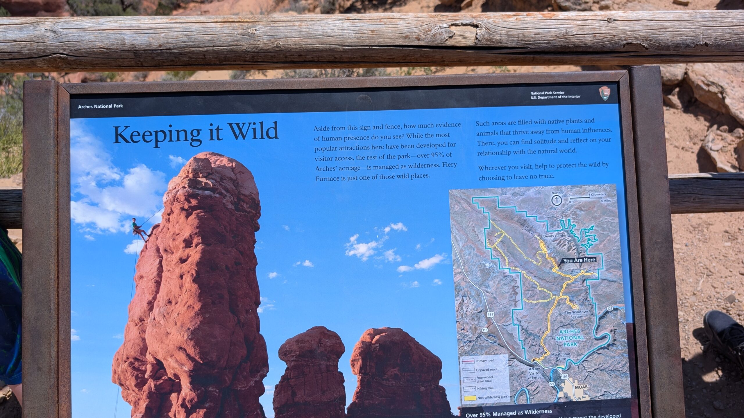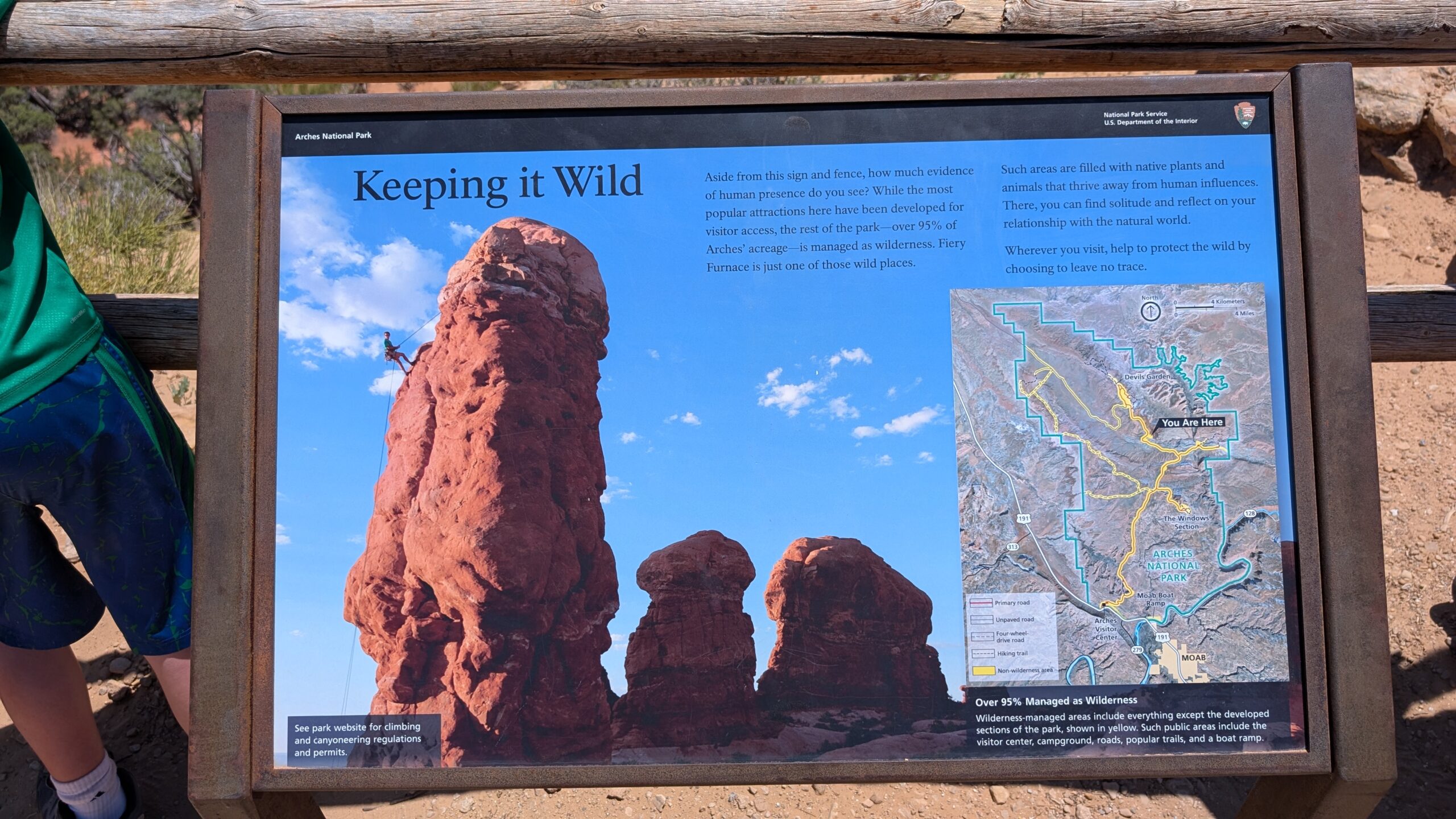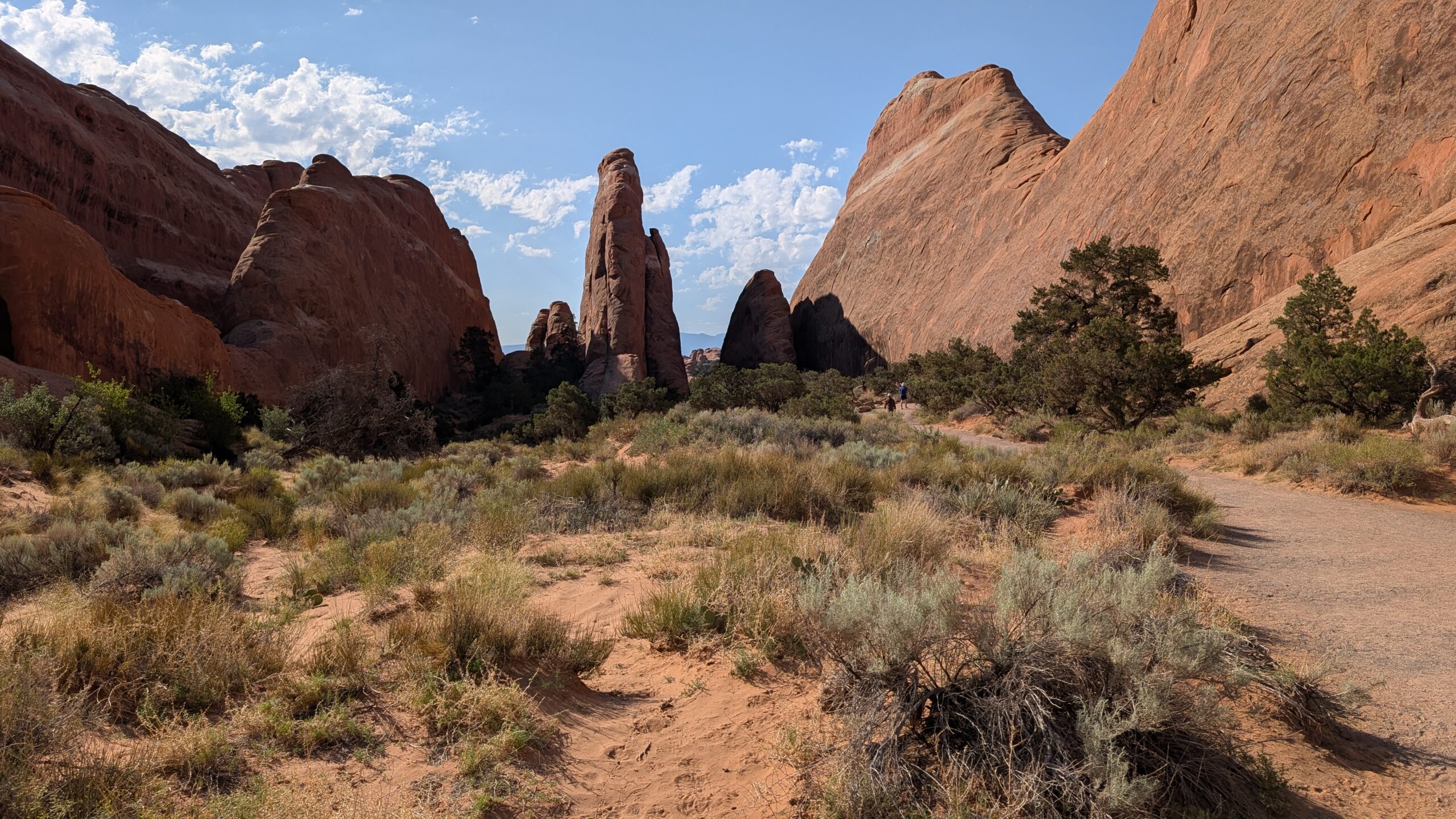 I really liked the Devil’s Garden trails (Landscape Arch, Pine Tree Arch, Tunnel Arch, Navajo Arch, and Partition Arch), except that there was significant whining, child-management, and mommy-mommy-mommy-mommy most of the way. And a highlight – the NPS worker cleaned out the pit toilets at the trailhead while we waited for Phil.