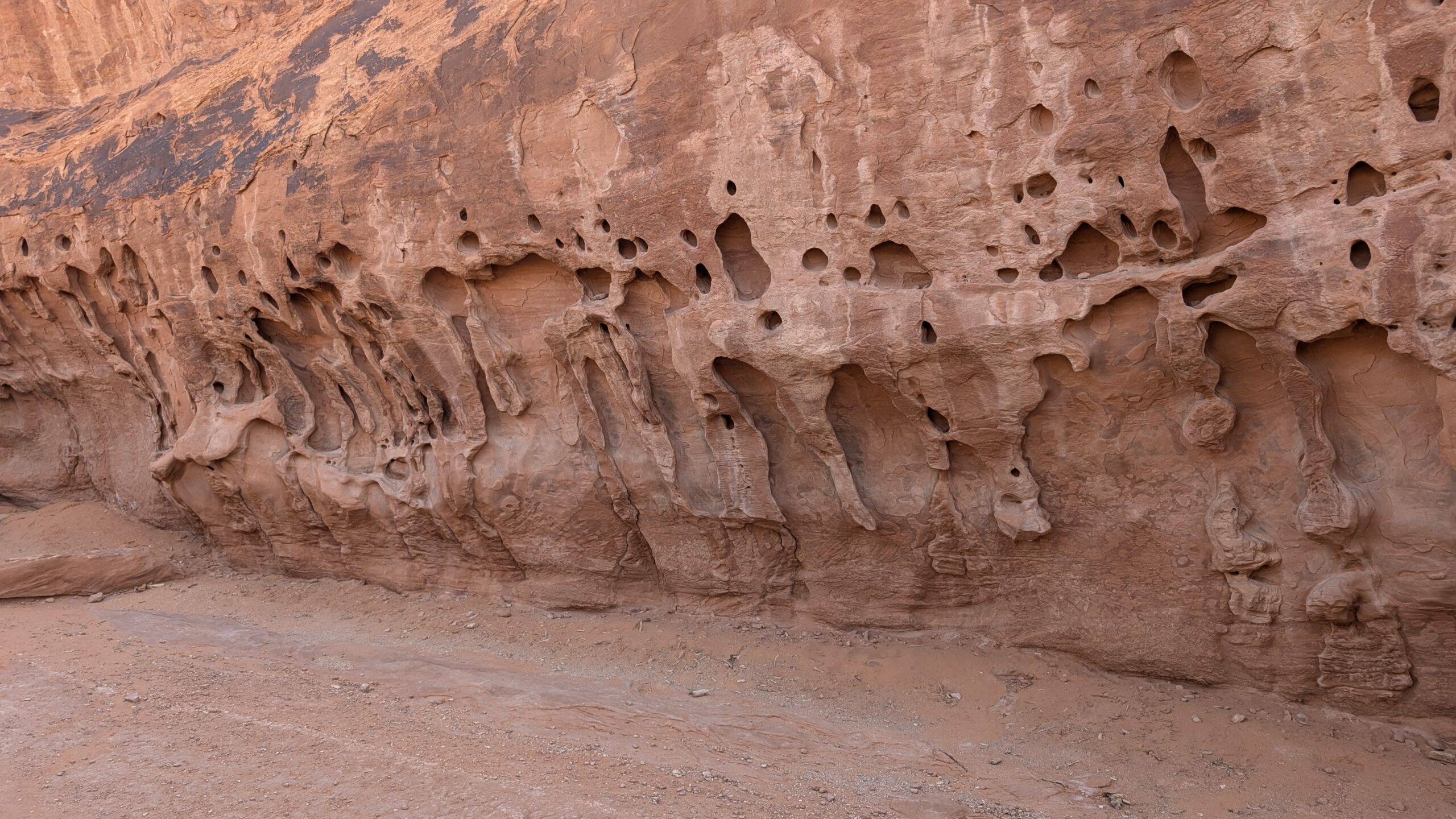 When I got to the top, I headed for Navajo Arch first. Along the way, I saw some cool features on the wall containing it. It looked like some sort of liquid topping that had not covered it all the way down, like you would see on a cake.