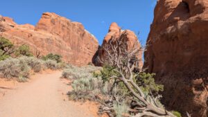 I hung back with the kids while Megan went to get a close view of the Landscape Arch. Once she returned, I went and saw it and the next arches by myself, because the arches beyond Landscape Arch required a steep ascent with drop offs that wouldn’t be fun with kids, especially whiny ones.