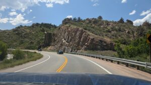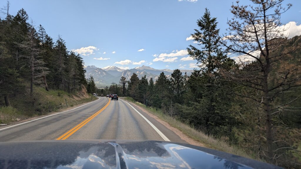The drive into Estes Park was fairly uneventful. There’s a fairly scenic canyon drive along US 36, but the real scenery isn’t there until you’re basically right in Estes Park. This was the descent down the final big hill before reaching Estes Park.