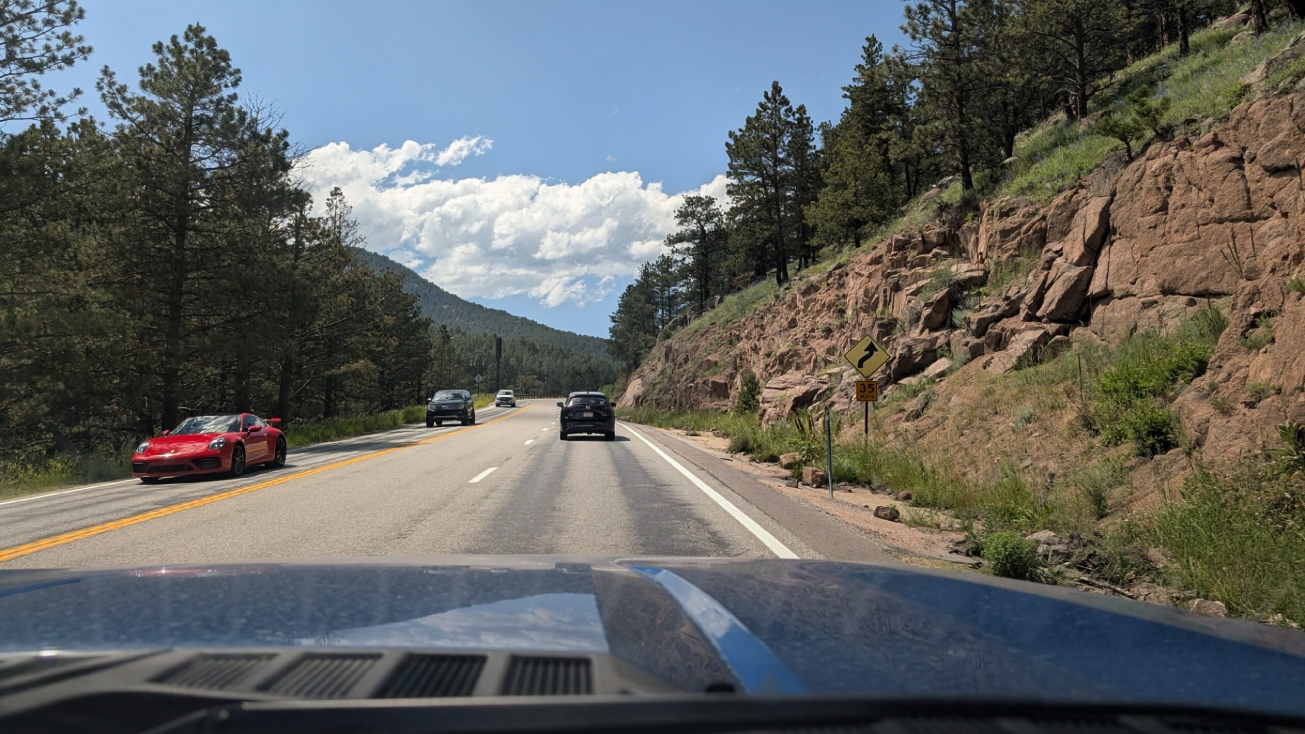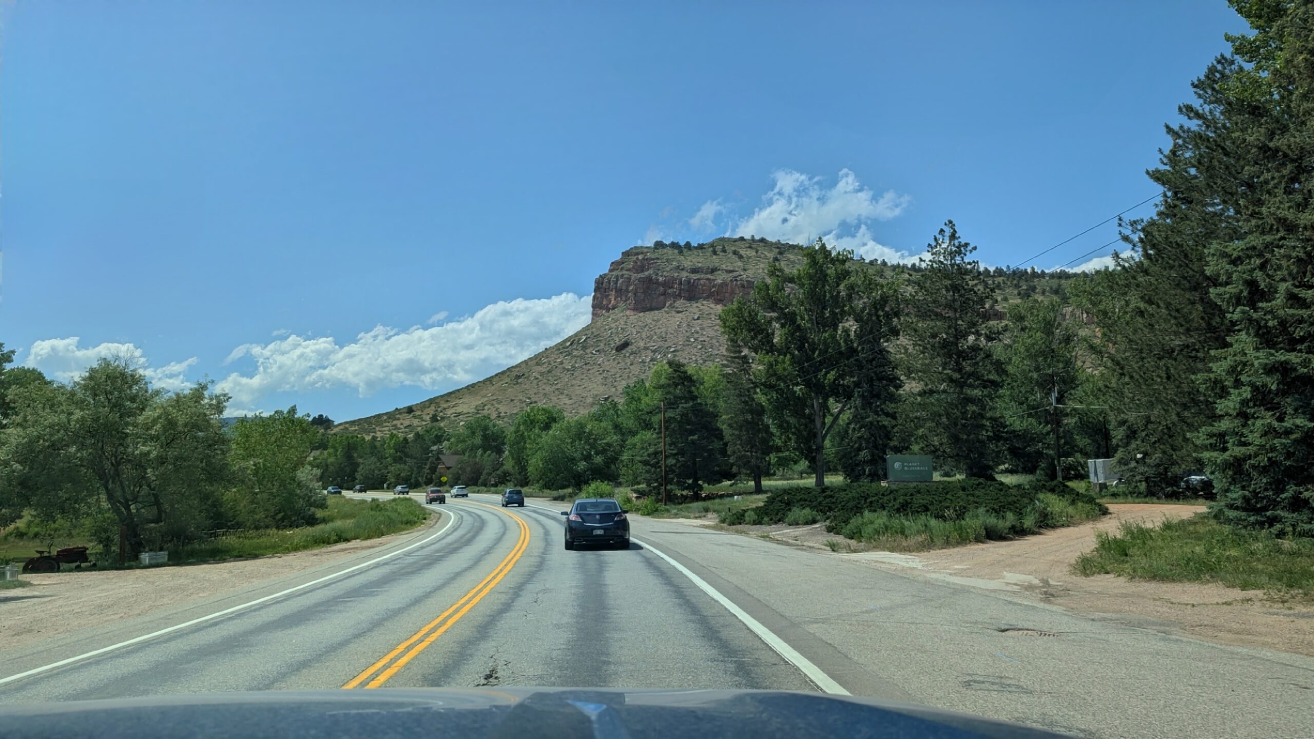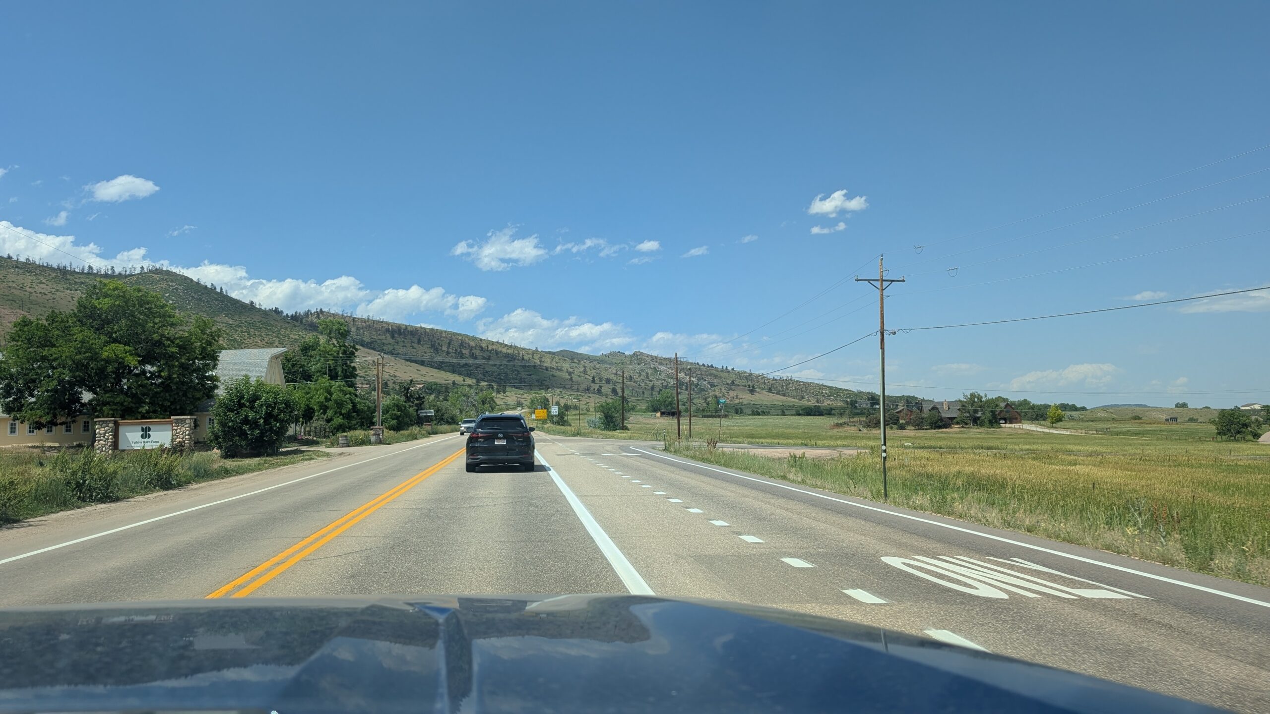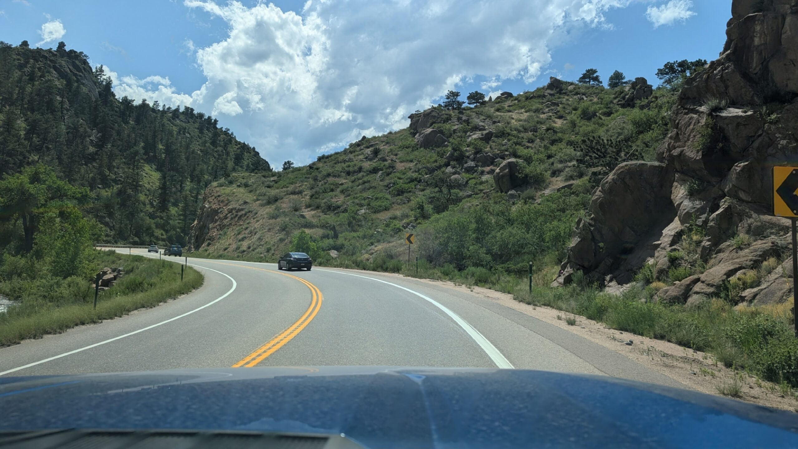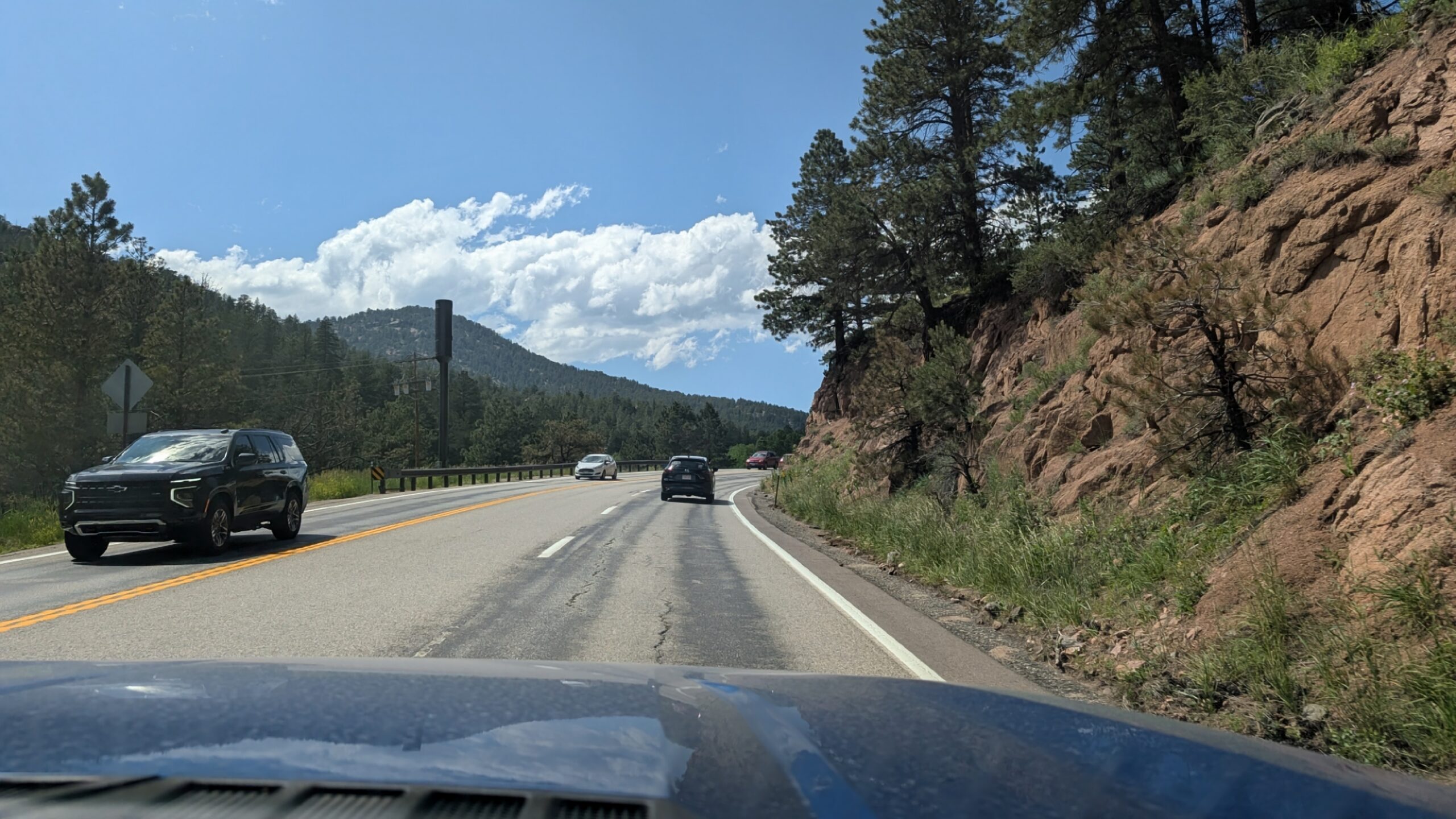 The drive into Estes Park was fairly uneventful. There’s a fairly scenic canyon drive along US 36, but the real scenery isn’t there until you’re basically right in Estes Park. This was the descent down the final big hill before reaching Estes Park.