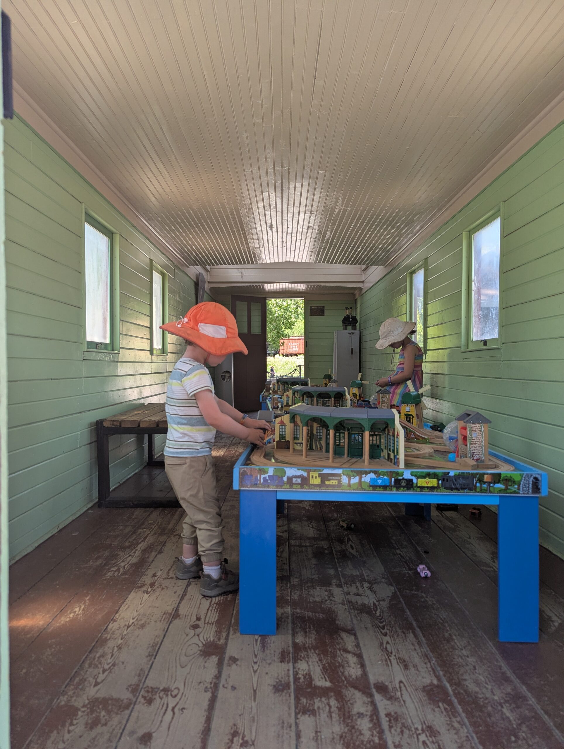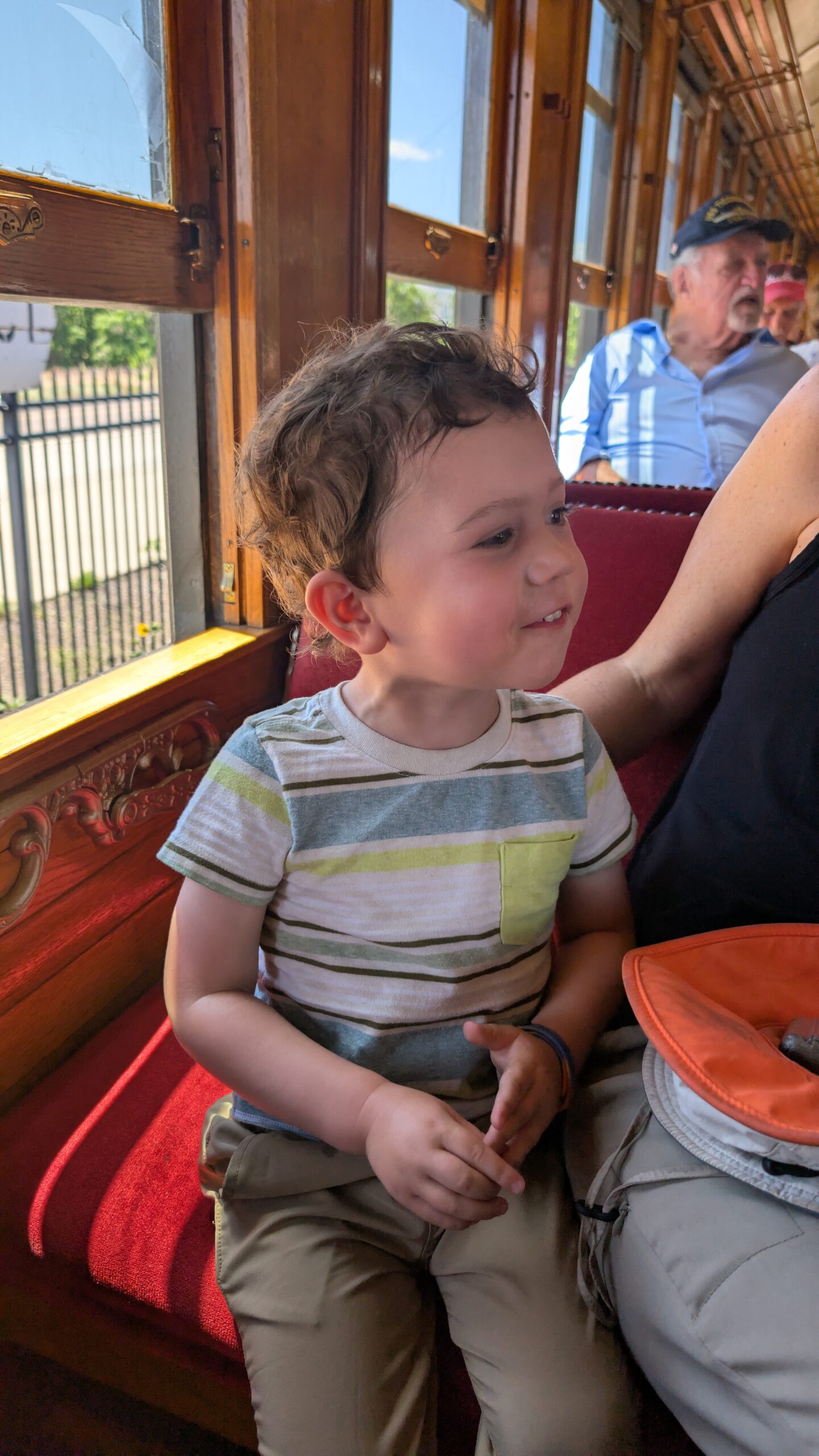 The train ride itself wasn’t long and wasn’t about the scenery. They built their own narrow gauge track around the perimeter of the museum property and use that. The ride does three complete passes before stopping. It does give you some closer views of things you can’t see as well from the pathways around the grounds. Emmett enjoyed watching it almost as much as he liked riding it.