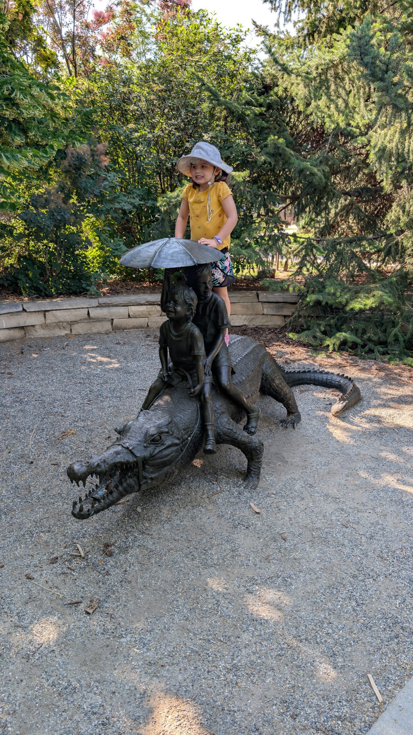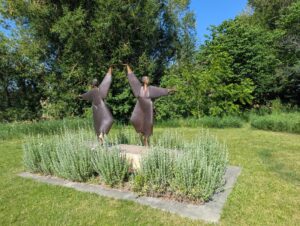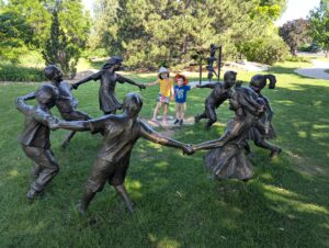 many of which invite interaction (such as the ring of children with an empty space where a visitor could stand to hold hands).