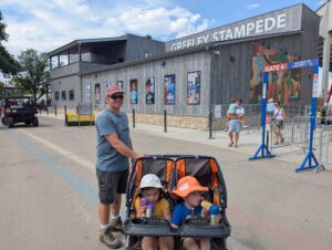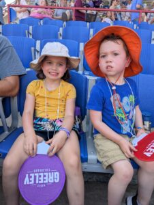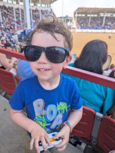 We could have stayed longer to play at the event park, but we needed to get the kids back for dinner and bedtime, aiming for 7 am Mass tomorrow. Overall, we had fun at the Greeley Stampede, and it has us primed and ready for county fairs when we return to Indiana.